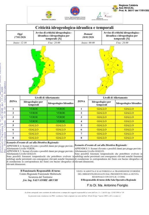 Altri comuni hanno preso la medesima decisione operando in via preventiva. La pioggia è prevista già dalla serata del 17 gennaio, proseguendo anche nella giornata del 18 gennaio.