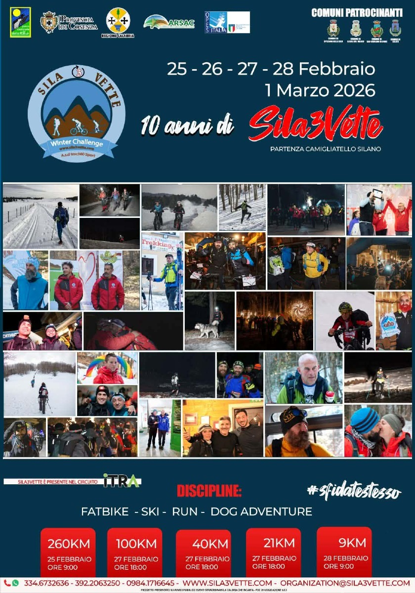 La Sila3Vette torna con la sua X edizione, una Winter challenge unica nel suo genere, la più a sud d’Europa, capace di attraversare la Sila in inverno quando la montagna chiede rispetto, preparazione e visione.