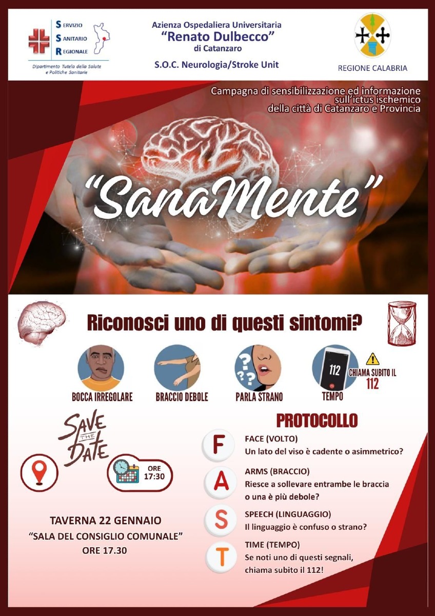 Taverna - Il Comune di Taverna annuncia l’avvio di una campagna di sensibilizzazione dedicata alla prevenzione dell’ictus ischemico, realizzata in collaborazione con l’Azienda Ospedaliera Universitaria “Renato Dulbecco” di Catanzaro.